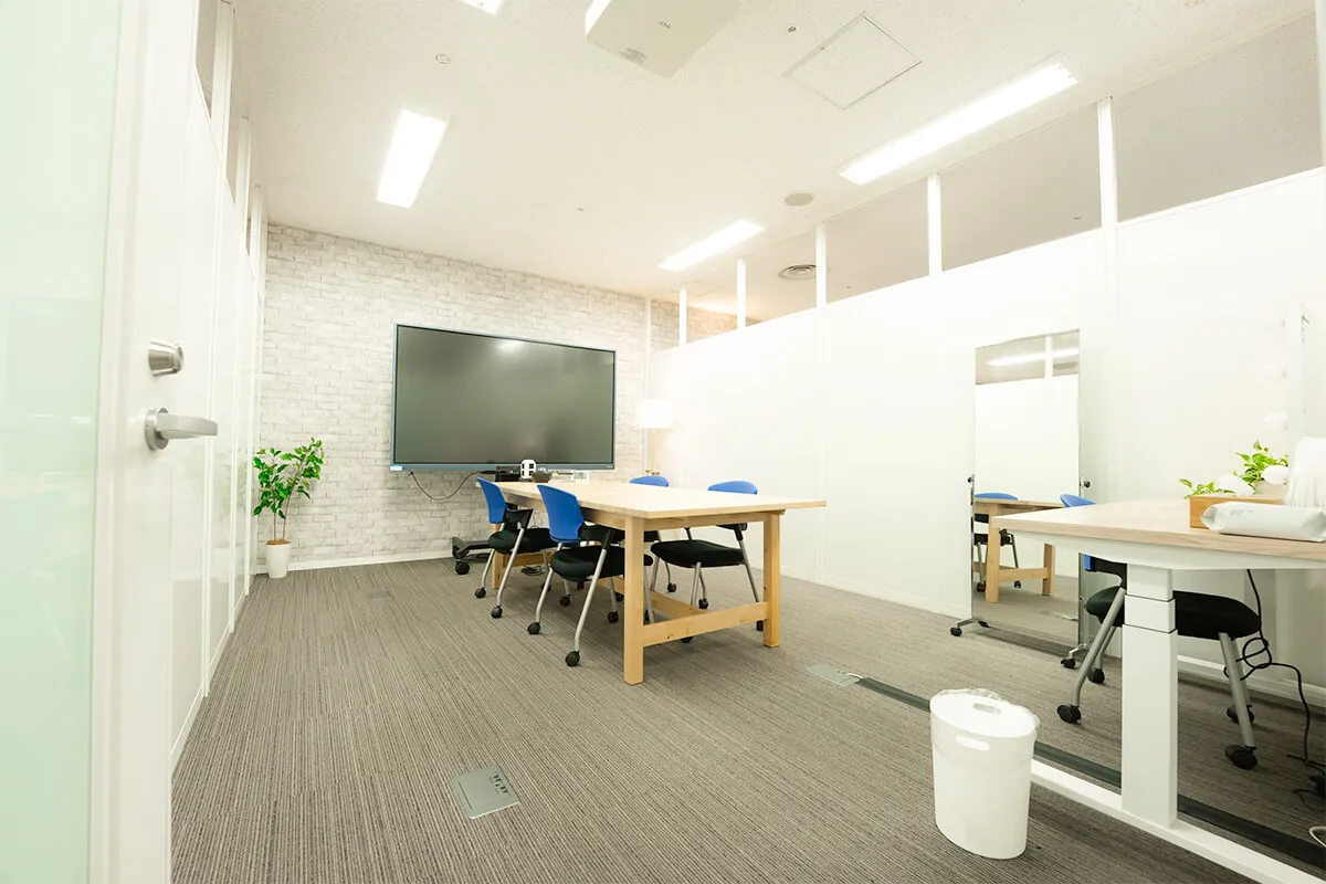 Bルームは、大型モニターと広いテーブルを備えた会議室タイプで、複数名での打ち合わせやリハーサルに便利です。