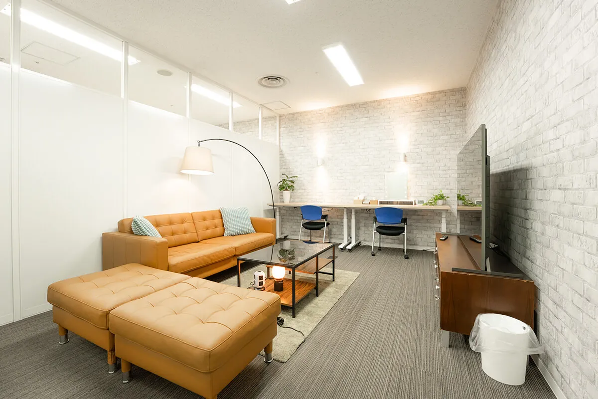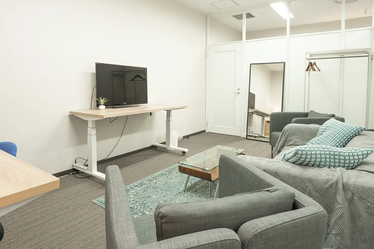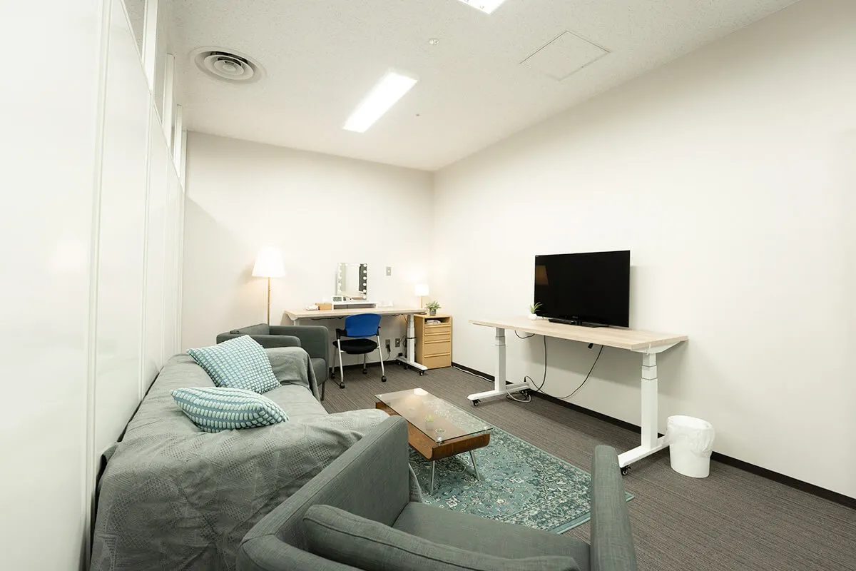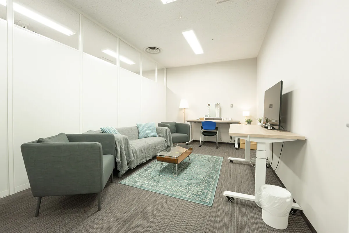 落ち着いた雰囲気のCルームは、ソファとデスクを備え、待機や作業に快適な環境を提供します。