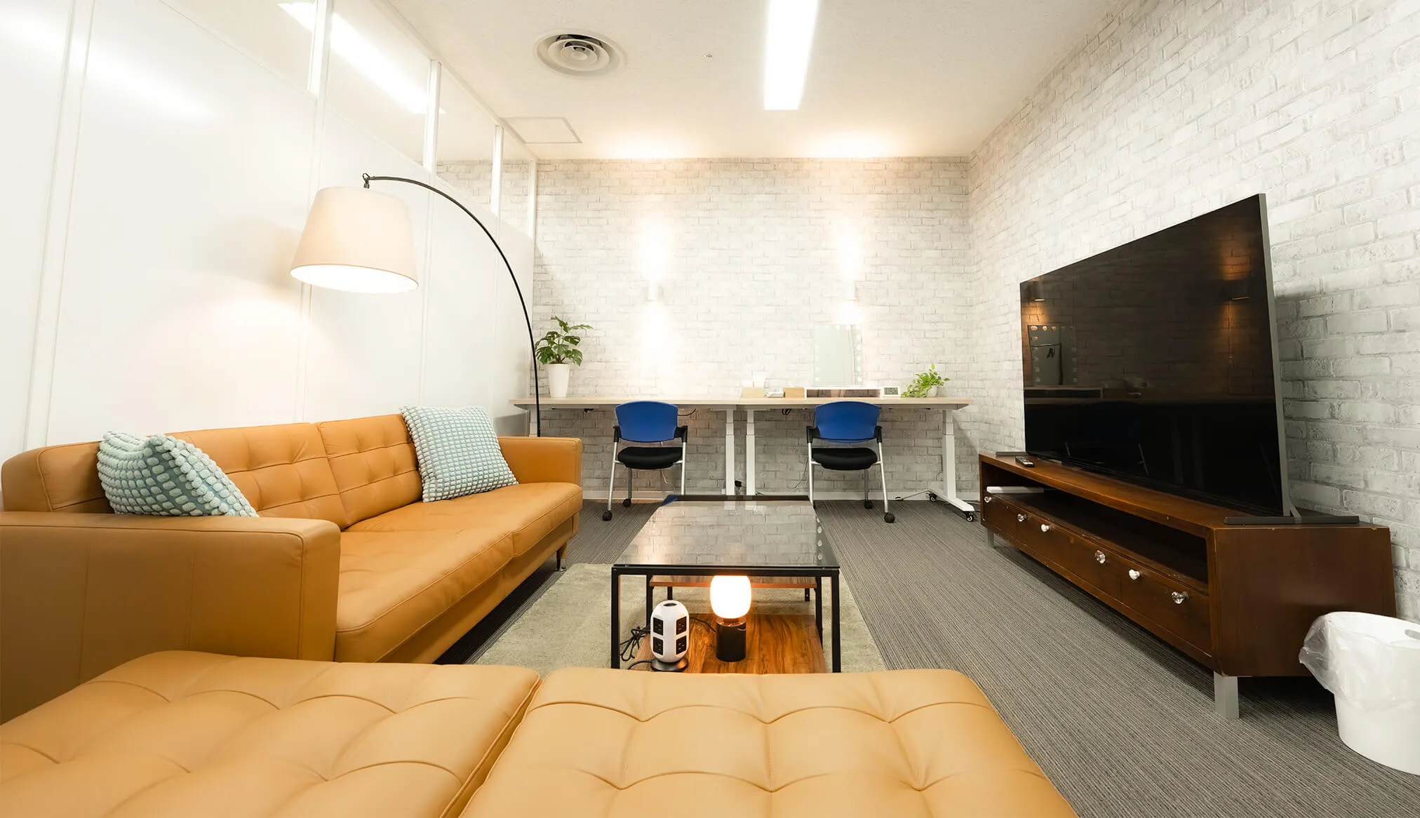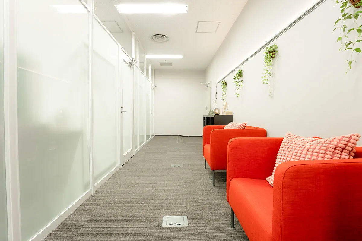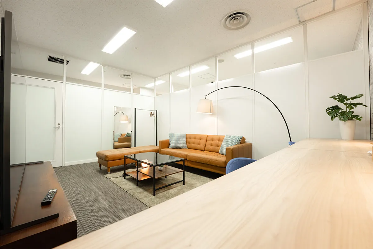 落ち着いた雰囲気のCルームは、ソファとデスクを備え、待機や作業に快適な環境を提供します。