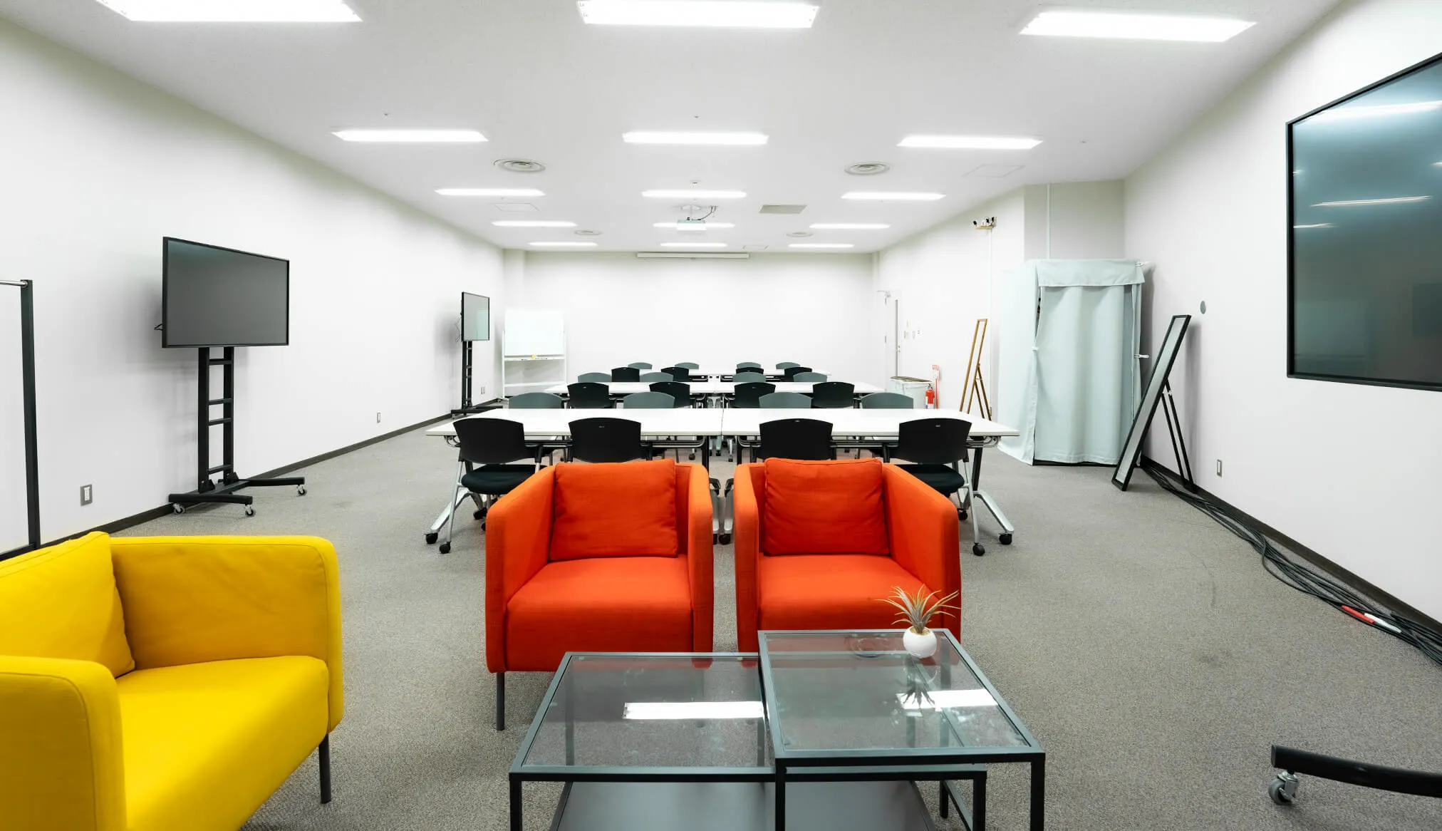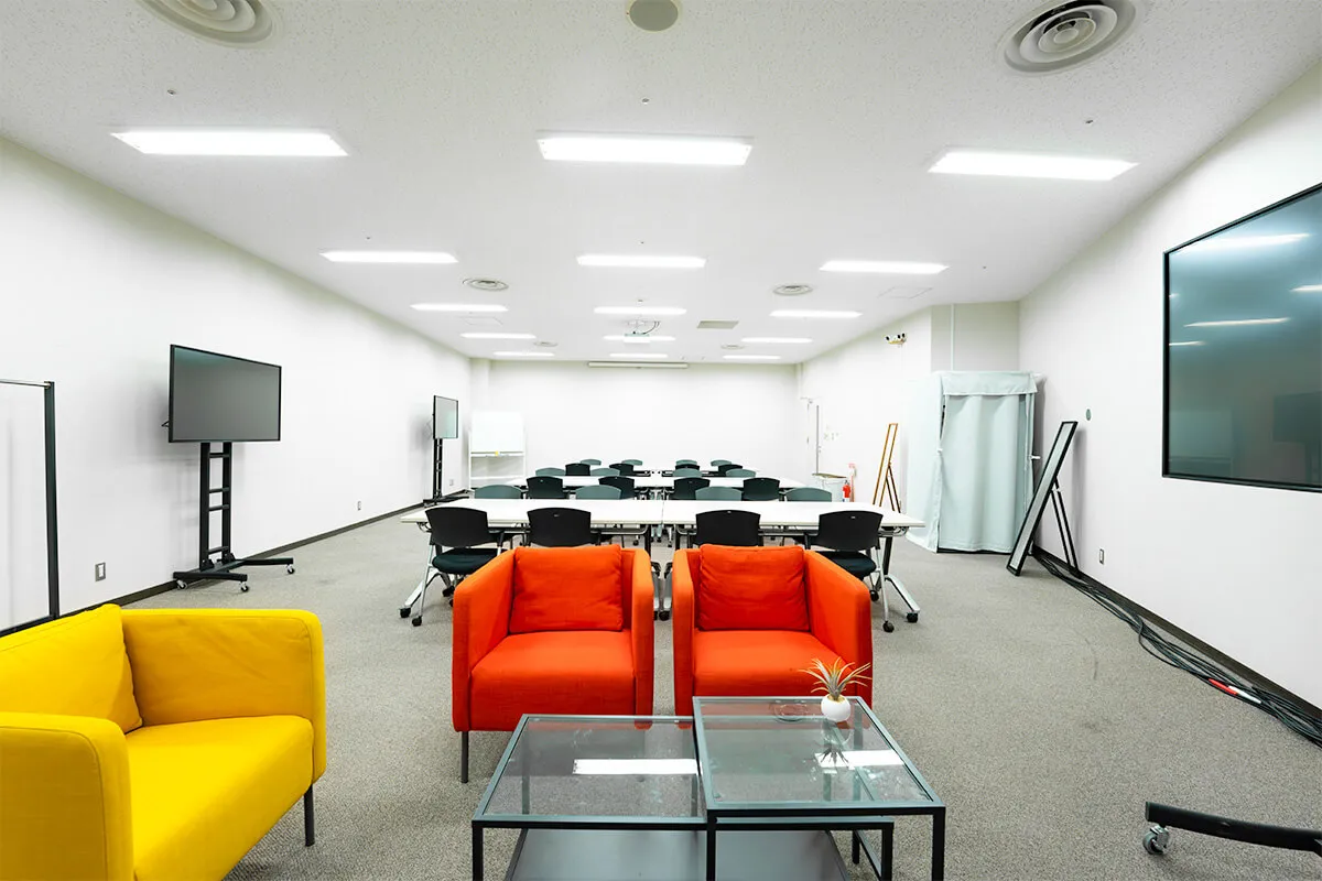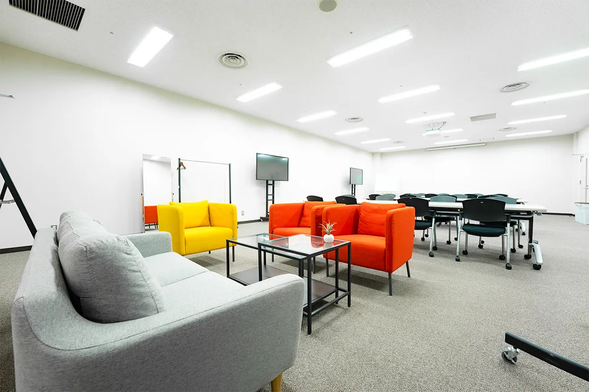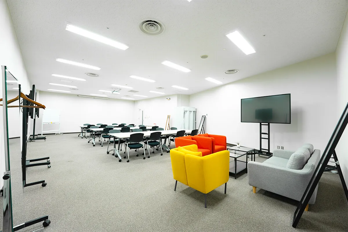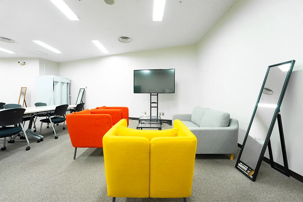 会議室や待機スペースとしてだけでなく、撮影・収録にも活用できる多目的な控室です。